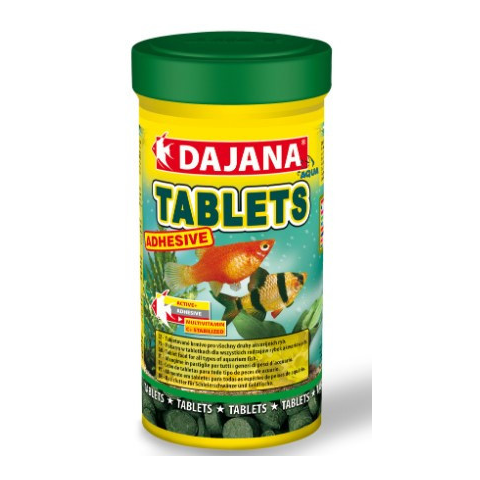 A DAJANA-TABLETY üvegfalra ragasztható haltáp praktikus és látványos etetést biztosít közösségi akváriumokban. Kiegyensúlyozott tápanyag-összetétele támogatja a halak egészségét és élénk színeit. Lassú oldódásának köszönhetően nem szennyezi a vizet. A