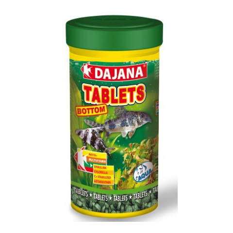 A DAJANA-TABLETY süllyedő tablettás haltáp ideális fenéklakó halak, harcsák és garnélák számára. Kiegyensúlyozott összetevői támogatják az egészséges növekedést, az élénk színeket és az erős immunrendszert. Lassú oldódásának köszönhetően nem szennyezi a v
