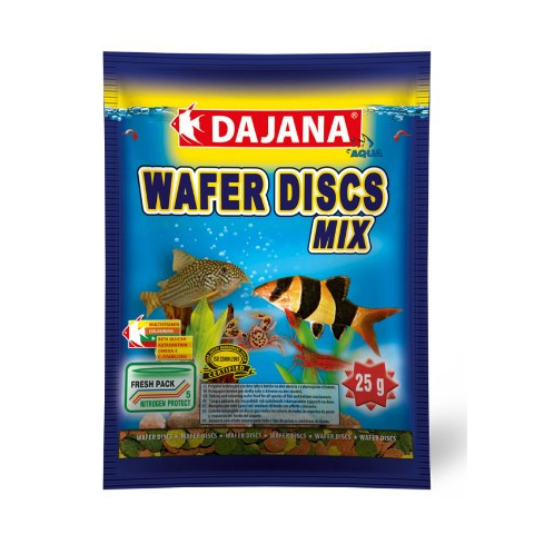 A DAJANA-WAFER DISCS MIX süllyedő haleledel algázók és fenéklakó halak számára, spirulinával és állati fehérjékkel a kiegyensúlyozott táplálkozás érdekében. Lassan oldódó formulája nem szennyezi a vizet, támogatja az emésztést és az egészséges növekedést.