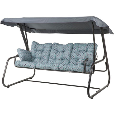 A CELEBES egy nagyon kényelmes és kiválóan kidolgozott fém kerti hintaágy. Robosztus, erős szerkezete poliészter-epoxi porfestéket kapott, antracit színben, mely ellenálló az időjárás viszontagságaival szemben. Az elegáns négyszemélyes hintaágy kellemes és nyugtató hangulatot hoz otthonába. A párna a csomag része és a karfa párnája levehető. A vízszintesig lehajtható háttámla teljes kényelmet bizt