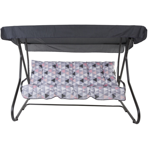 DAJAR MILANO lehajtható fém kerti hintaágy, tetővel - 035-23A MILANO hintaágyat a kényelem és a kiváló minőségű kidolgozás jellemez. A vízszintesig lehajtható háttámla teljes kényelmet biztosít, ezen a háromszemélyes hintaágyon. A keret poliészter-epoxi keverékkel porfestett, antracit színben, mely még ellenállóbbá teszi a terméket a külső hatásokkal szemben. A csomag tartalmazza a 2 steppelt ülést is. Az ülés teteje pamut, az alsó lutrasil anyagú. Poliész