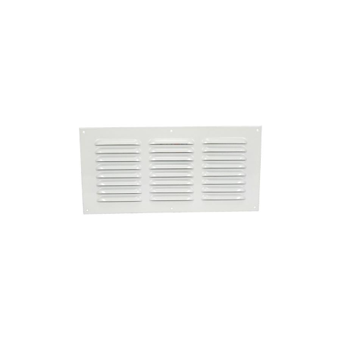 Fém szellőzőrács 305x150 mm rovarhálóval és csőcsonk nélkül , fehér színben , befúvásra és elszívásra is alkalmas. A rács szilárd vízszintes lamellákkal rendelkezik, enyhe dőléssel.