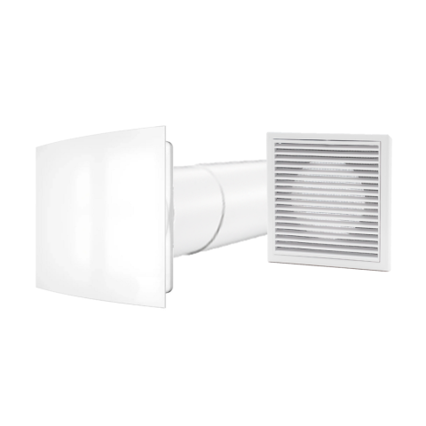 Fürdőszoba ventilátor időzítővel, külső ráccsal, oldalfalra 100 mm- Szettben