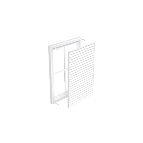 A szellőzőrács, rovarvédő hálóval alkalmas elszívó vagy befúvó szellőztetés végzáró elemének. Fix döntött zsaluval készült. A szellőzőrácsot falhoz vagy mennyezethez lehet erősíteni. A csavarok helye a peremben a lamellák alatt van, így felszerelés után nem láthatóak, növelve az esztétikus kinézetet.