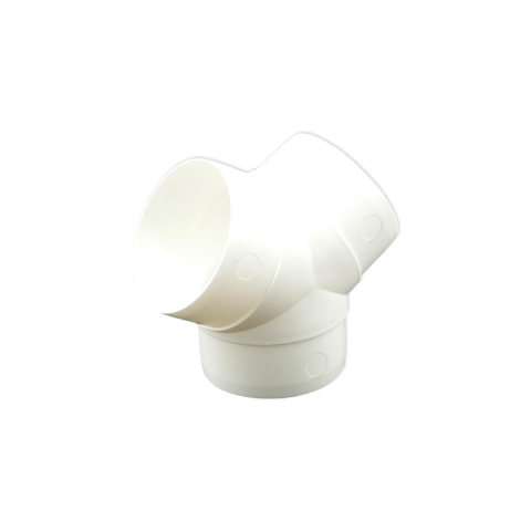 100 mm átmérőjű műanyag Y idom azonos átmérőjű csövek elágaztatásához, alkalmazható mind műanyag mind fém légtechnikai csatornákhoz.