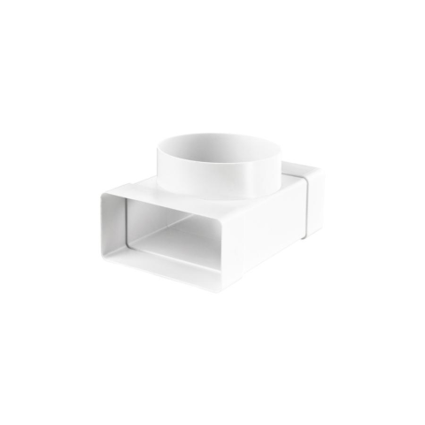 T - idom 110x55 - Ø100mmA T - idom 110x55 - Ø100mm kerek és lapos légcsatornák közötti kapcsolatot biztosítja. Leggyakrabban a motor és a lapos légcsatorna közötti átmenetre használják.