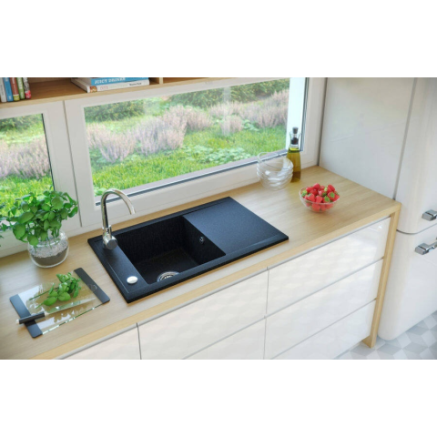 1 kép Dalfor PARIS gránit mosogató automata dugóemelő, szifonnal, fekete-szemcsés, beépíthető