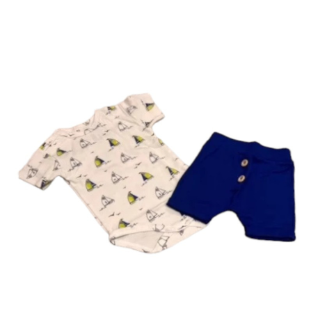 Dalma 2 részes nyári szett - Fehér/Kék Hajós 62 babaruha szett 1 kép
