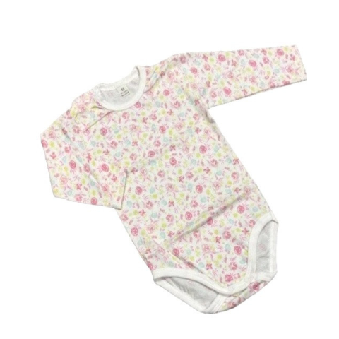 1 kép Dalma Hosszú Ujjú Body - Fehér/Rózsaszín Apró Rózsás - 86