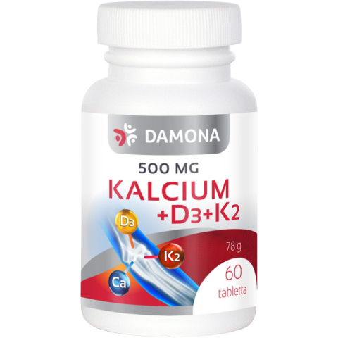 Damona kalcium d3 k2 tabletta 60 db A normál csontozat, fogazat és izomfunkció fenntartásához. 500 mg kalciumot, valamint D3- és K2-vitaminokat tartalmazó étrend-kiegészítő tabletta.