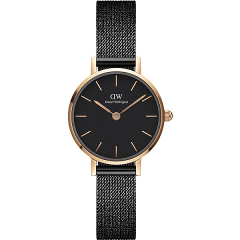 Karóra nőknek - analóg idő megjelenítés, óramű típusa quartz, kerek számlap, elegáns, számozás nélküli, ásványi számlap, 30 m (3 ATM) vízhatlanság, a tok anyaga rozsdamentes acél, a tok színe rózsaarany, a szíj anyaga acél, a szíj színe fekete, 13,5 - 19,5 cm csuklóméretre, cserélhető szíjjal A klassz DANIEL WELLINGTON Petite DW00100441 nőknek karóra jó szolgálatot tesz a mindennapokban. Az alapját egy 24 mm szélességű kerek számlap alkotja. A hatékony Q