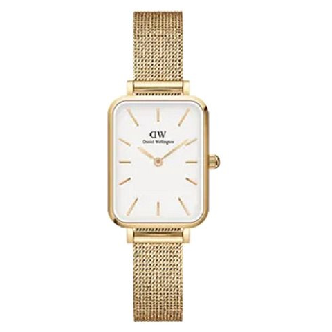 Karóra nőknek - analóg idő megjelenítés, óramű típusa quartz, szögletes számlap, elegáns, számozás nélküli, ásványi számlap, 30 m (3 ATM) vízhatlanság, a tok anyaga rozsdamentes acél, a tok színe arany, a szíj anyaga acél, a szíj színe arany, 13,5 - 19,5 cm csuklóméretre, cserélhető szíjjal A nagyszerű DANIEL WELLINGTON Quadro DW00100556 nőknek karóra remek választás a mindennapkora. Az alapját egy 20 mm átmérőjű szögletes számlap képezi. A hatékony