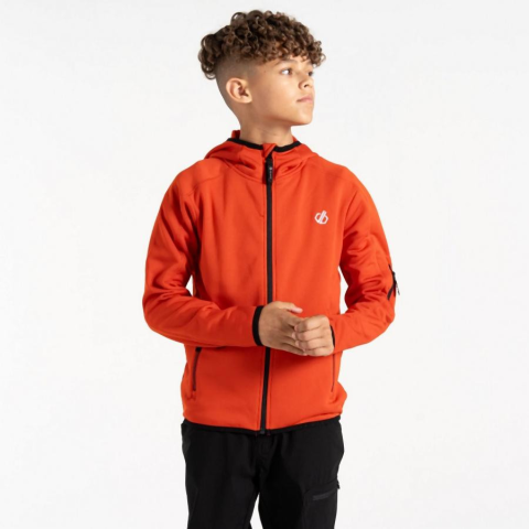 Gyerek polár felső kötött sztreccs poliészter polár fix kapucni rugalmas szegélyek Teljes hosszúságú cipzár Belső cipzár és állvédő 2 cipzáras alsó zseb Dare2be Explore Fleece Gyerek polár felsõ Lásd a terméken I29 narancs Gyerek polár felső kötött sz