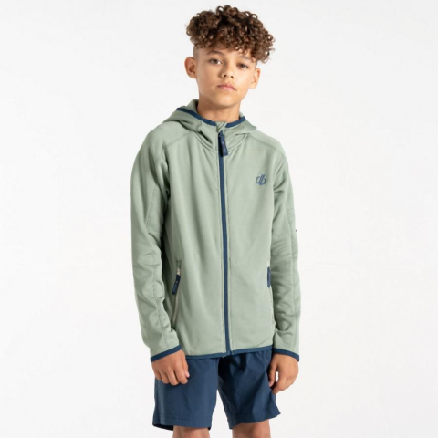 Gyerek polár felső kötött sztreccs poliészter polár fix kapucni rugalmas szegélyek Teljes hosszúságú cipzár Belső cipzár és állvédő 2 cipzáras alsó zseb Dare2be Explore Fleece Gyerek polár felsõ Lásd a terméken P99 zöld Gyerek polár felső kötött sztre