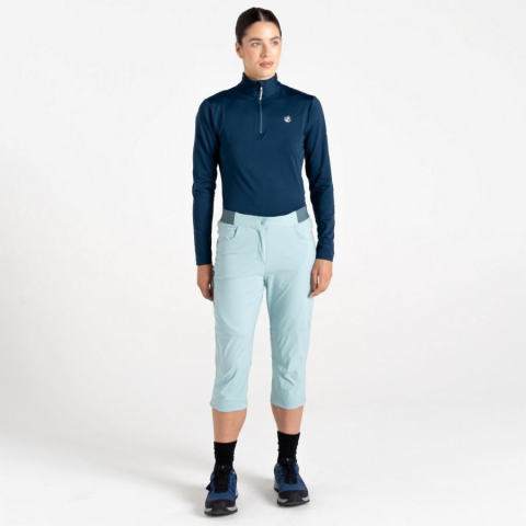 Női capry túranadrág Rugalmas és strapabíró túranadrág UV-védelemmel Újrahasznosított nejlon/elasztán keverék ? rugalmas, légáteresztő és tartós Tartós vízlepergető (DWR) bevonat az extra védelemért Artikulált térdkialakítás a szabad mozgásért és maximáli