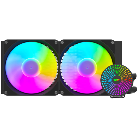 Kompakt, univerzális vízhűtés 2 darab 140mm-es ventilátorral és vezérelhető ARGB világítással.