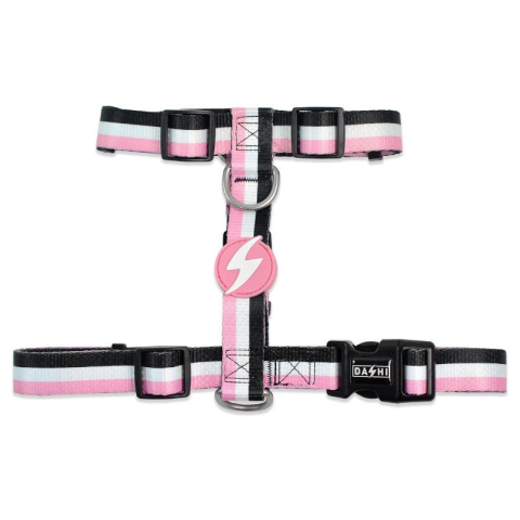 Dashi Stripes Pink&Black H-hám M(2cmx42-69cmx32-50cm) nyakörv, póráz, hám kutyáknak 1 kép