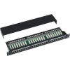 Patch panel - 19", Terminál típusú LSA / Krone Kész 19" patch panel 24 RJ-45 porttal nagy hálózatok építéséhez árnyékolt (STP) kábelekkel. A panel alkalmas foglalatba helyezéshez (rack), amely 1U helyet foglal, fekete színű, és támogatja
