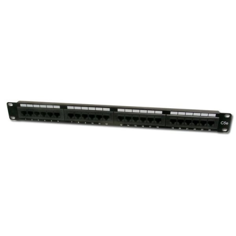 Patch panel - LSA / Krone Egy összeállított patch panel 24 RJ-45 porttal nagy hálózatok építésére. A panel alkalmas állványra való elhelyezésre, fekete kivitelezéssel rendelkezik, és támogatja az 5e kategóriát.Műszak