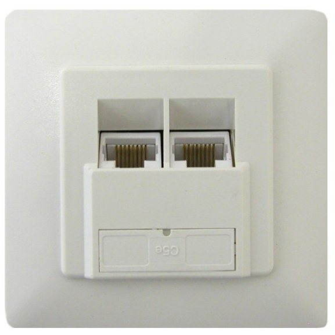 Aljzat - cat. 5E, árnyékolt, LSA bevágás Professzionális dugaljszerelvény számítógépes hálózat kiépítéséhez két RJ-45-ös csatlakozó bemenettel. Egyenesen a falba kell szerelni a vakolat alá. Kiválóan alkalmas új internetes hálózatok kiépítés
