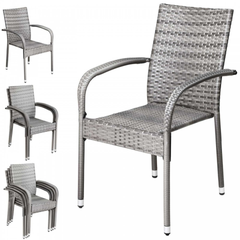 Teljes Daube Polirattan kerti szék 4 darab szürke karfás szék rakásolható termékleírás