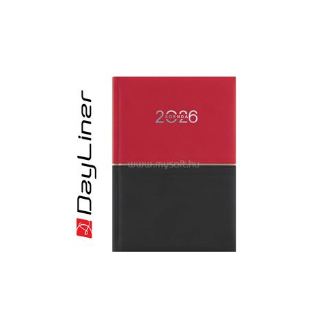 1 kép DAYLINER Határidőnapló Contrast A5 napi, fehér lapokkal piros-fekete 2026. (DAYLINER_57788)