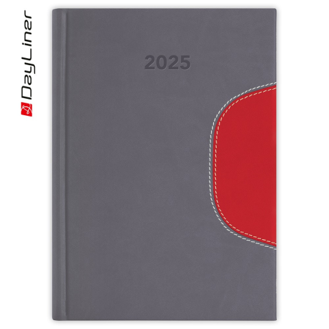 1 kép DAYLINER Határidőnapló Memphis B5 heti, fehér lapokkal szürke-piros Dayliner 2025.