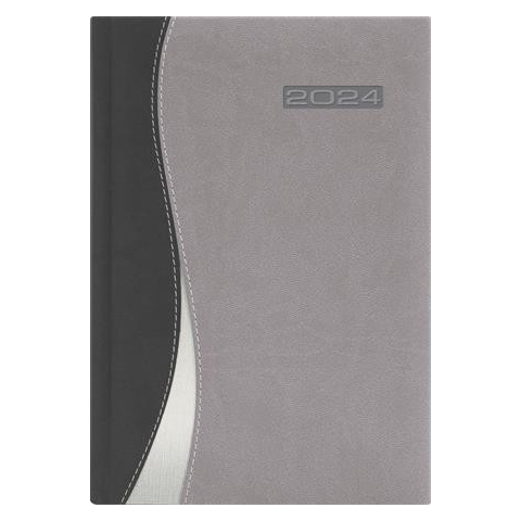 Naptár, tervező, A5, heti, DAYLINER, Dubai, fekete-szürke A Dubai agendák puha, bőrhatású anyagból egyedi varásssal készülnek. A színek és formák valamint a stílusos vászonbetétek együtt alkotnak derűs összehangot. -időbeosztás: félórás, 8-20.00 h -mű