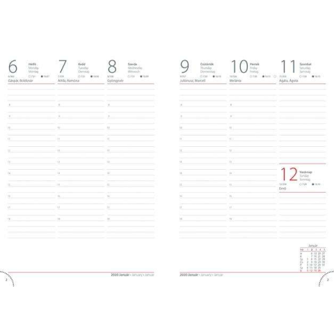 Selymes, puha tapintású anyag, valamint letisztult vonalak jellemzik a Pannon termékcsaládot. -időbeosztás: félórás, 8-20.00 h -lapok 70 g/m2, fehér ofszetpapírból -szürke-vörös nyomat -jelzőszalaggal -sarokperforáció -Budapest és Magyarország térképpel