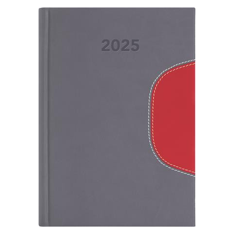 Két harmonizáló színű, bőrhatású anyag egyedi összeillesztésével, gyönyörű varrással készült agendák nagy méret-és színválasztékban. -matt, bőrhatású borító -időbeosztás: félórás, 8-18.00 h -lapok 70 g/m2, fehér ofszetpapírból -szürke-vörös nyomat -jelző