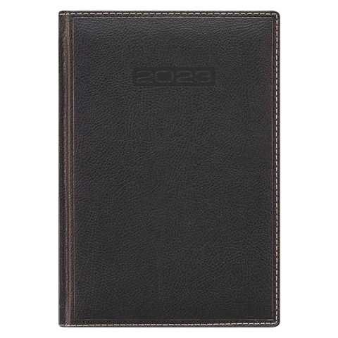Naptár, tervező, A5, napi, DAYLINER, Sherwood, fekete Finoman struktúrált, bőrhatású anyag felhasználásával, enyhén kontrasztos varással készült borító. A kerekített sarkok tovább erősítik az eleganciát. -matt, bőrhatású borító -időbeosztás: félórás,