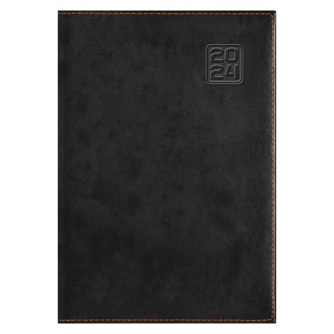 Naptár, tervező, A5, napi, DAYLINER Square, fekete A Square agendák puha, bőrhatású anyagból egyedi varásssal készülnek. -időbeosztás: félórás, 8-20.00 h -műbőr, bőrhatású borító -lapok 70 g/m2, fehér ofszet papírból -jelzőszalaggal -sarokperforáció -
