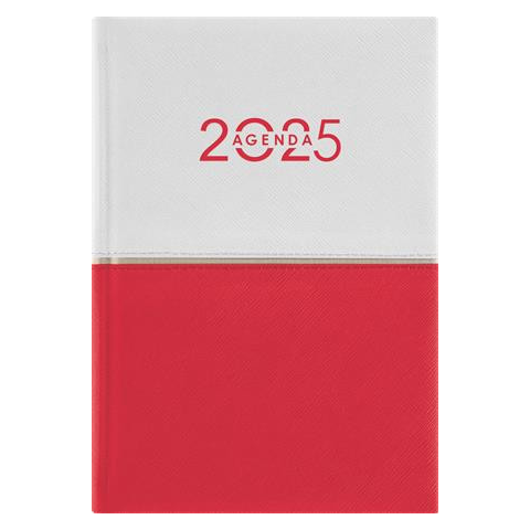 Két harmonizáló színű, bőrhatású anyag egyedi összeillesztésével, gyönyörű varrással készült agendák nagy méret-és színválasztékban. -matt, bőrhatású borító -időbeosztás: félórás, 8-18.00 h -lapok 70 g/m2, fehér ofszetpapírból -szürke-vörös nyomat -jelző