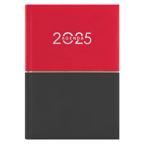 Naptár, tervező, B6, heti, DAYLINER Contrast, piros-fekete Két harmonizáló színű, bőrhatású anyag egyedi összeillesztésével, gyönyörű varrással készült agendák nagy méret-és színválasztékban. -matt, bőrhatású borító -időbeosztás: félórás, 8-18.00 h -l