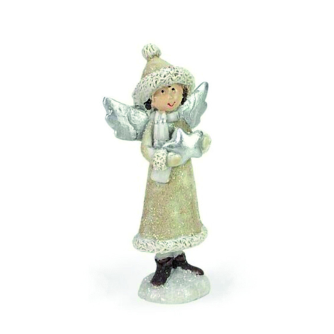 10cm x 5cm Angyal figura sapkában, sállal, pici ajándék csomaggal. Jól mutat önálló díszként és téli dekorációk kiegészítő elemeként egyaránt. Kollégáknak, ismerősöknek kisebb ajándékként is adható.