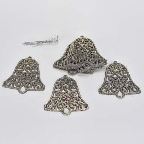 DC Csillámos harang dísz 9cm pezsgő karácsonyfadísz árgrafikon