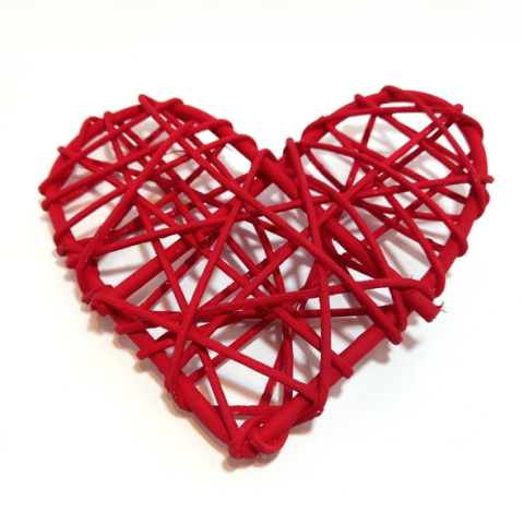Vesszőből készült szív alakú dekorálható alap piros színben. 15cm x 15cm x 20mm