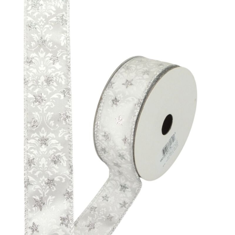 1 kép DC Karácsonyi szalag drótos szegéllyel 4cm széles - ezüst csillagos