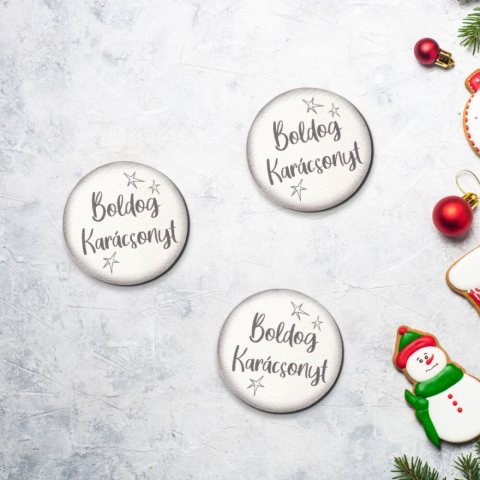 Nyomtatott fa tábla - Boldog Karácsonyt 5cm fehér-szürke