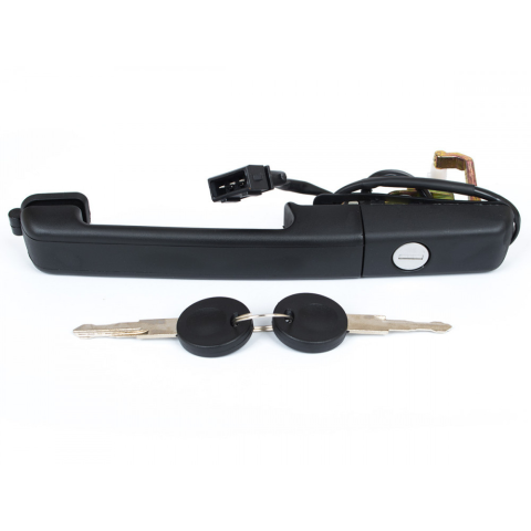 Seat Toledo I 91-96 külső első ajtó kilincs központi zárral, bal 1. Alkatrész: külső első ajtó kilincs kivezetéssel a központi zárba 2.Oldal: bal 3.Zár / kulcsok: mellékelve 4.Utángyártott alkatrész 5.Szín: fekete 6.Autó: Seat Toledo I 7.Gyártási év :