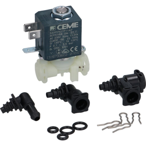 5220 - nyomás szerelvények - max 3,5 bar | FKM tömítés - nyílás átmérő ø 2,7 mm | B4 13,5VA 230V 50Hz tekercsel | folyadék hőmérséklet -10°C+140°C | csövek külső átmérő ø 4 mm Az alábbi típusokhoz: Kávégép DE LONGHI | 1782242, 368-306-7, 416.479.4, 48