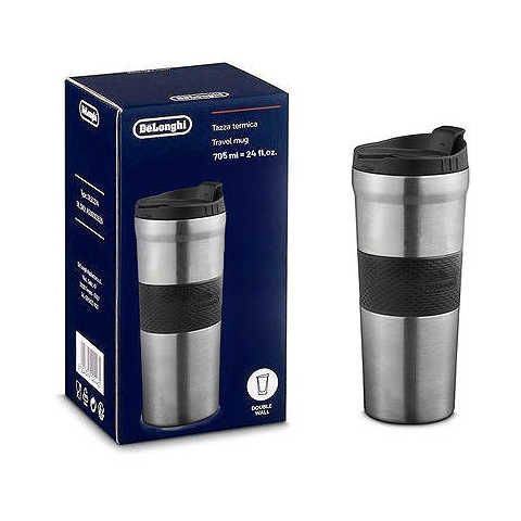 Thermo bögre - 705 ml-es űrtartalom, anyaga: rozsdamentes acél és szilikon, mosogatógépben mosható és alkalmas autóba, Szeretnéd, hogy a kávéd vagy a teád útközben se hűljön ki? A kiváló minőségű De'Longhi DLSC083 705 ml lesz a lehető legjobb megoldás. A kitűnő thermo bögre rozsdamentes acélból készül, így roppant ell