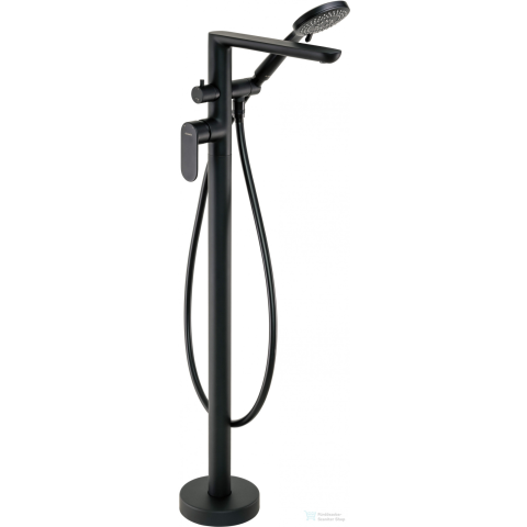 Deante Alpinia szabadonálló kádtöltő csaptelep matt fekete BGA_N17M 35 mm-es kerámiabetét Levegővel dúsított sugár Zuhanyszett 7 év garancia