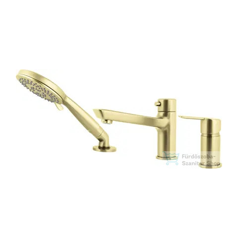 1 kép Deante ARNIKA 3-lyukú kádtöltő csaptelep, zuhanyszettel, szálcsiszolt arany BQA_R13M