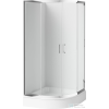 Deante Funkia tolóajtós íves zuhanykabin 80x80 cm-es KYP_052K Magasság: 185 cm 5 mm-es átlátszó, edzett biztonsági üveg Króm színű profilok, zsanér tolóajtók Dupla csapágyas görgők