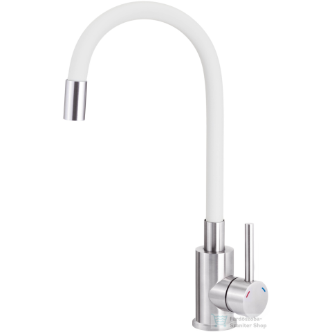 Deante NEO LUNO mosogató csaptelep, flexibilis, fehér-acél BOC_W720