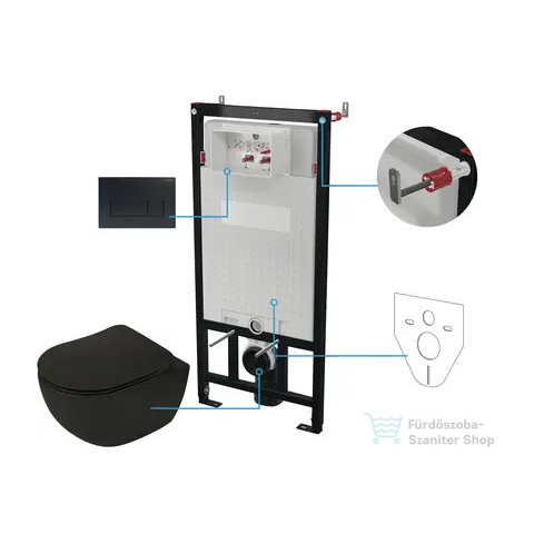 1 kép Deante Peonia Zero fali WC szett, ülőkével, falsík alatti tartállyal, nyomólappal, fekete CDENNZPW