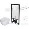 1 kép Deante Peonia Zero fali WC szett, ülőkével, szerelőkerettel, fehér nyomólappal CDEA6ZPW