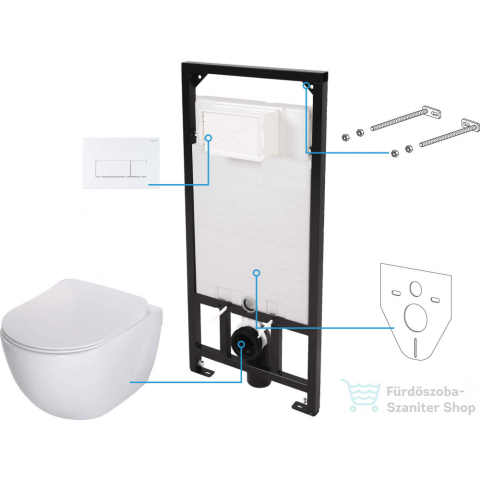 1 kép Deante Peonia Zero fali WC szett, ülőkével, szerelőkerettel, fehér nyomólappal CDEA6ZPW