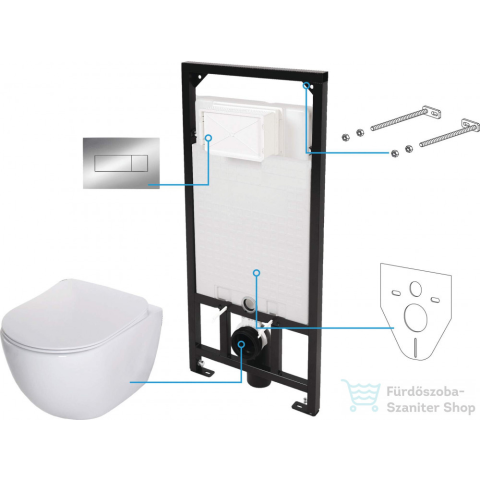 1 kép Deante Peonia Zero fali WC szett, ülőkével, szerelőkerettel, króm nyomólappal CDES6ZPW